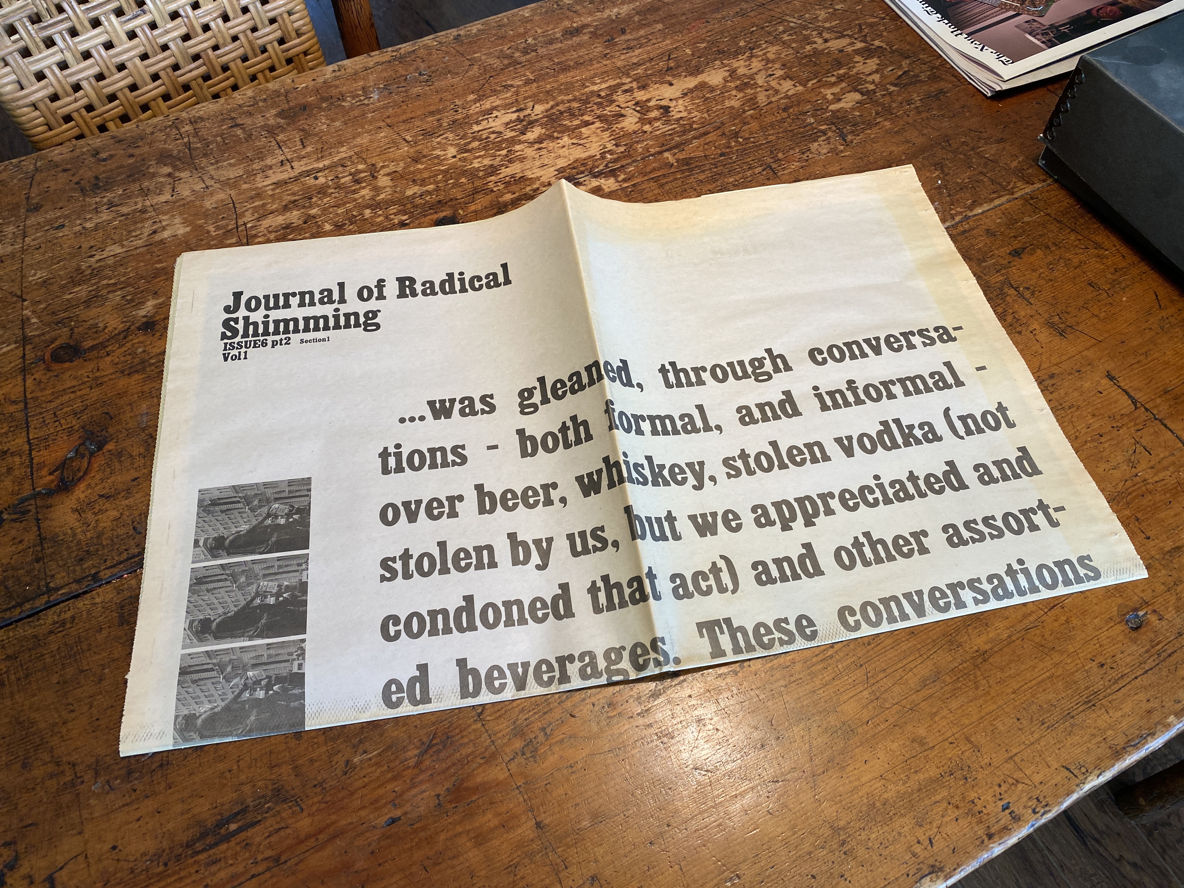 The Journal of Radical Shimming was, apart from a means of documenting transformative counter-histories, a tool in print-form in which to instigate discussion on how we encounter and define these histories; accepted, or otherwise. A forum to propose simple tools, the JRS aimed to instigate possible future histories in the making.