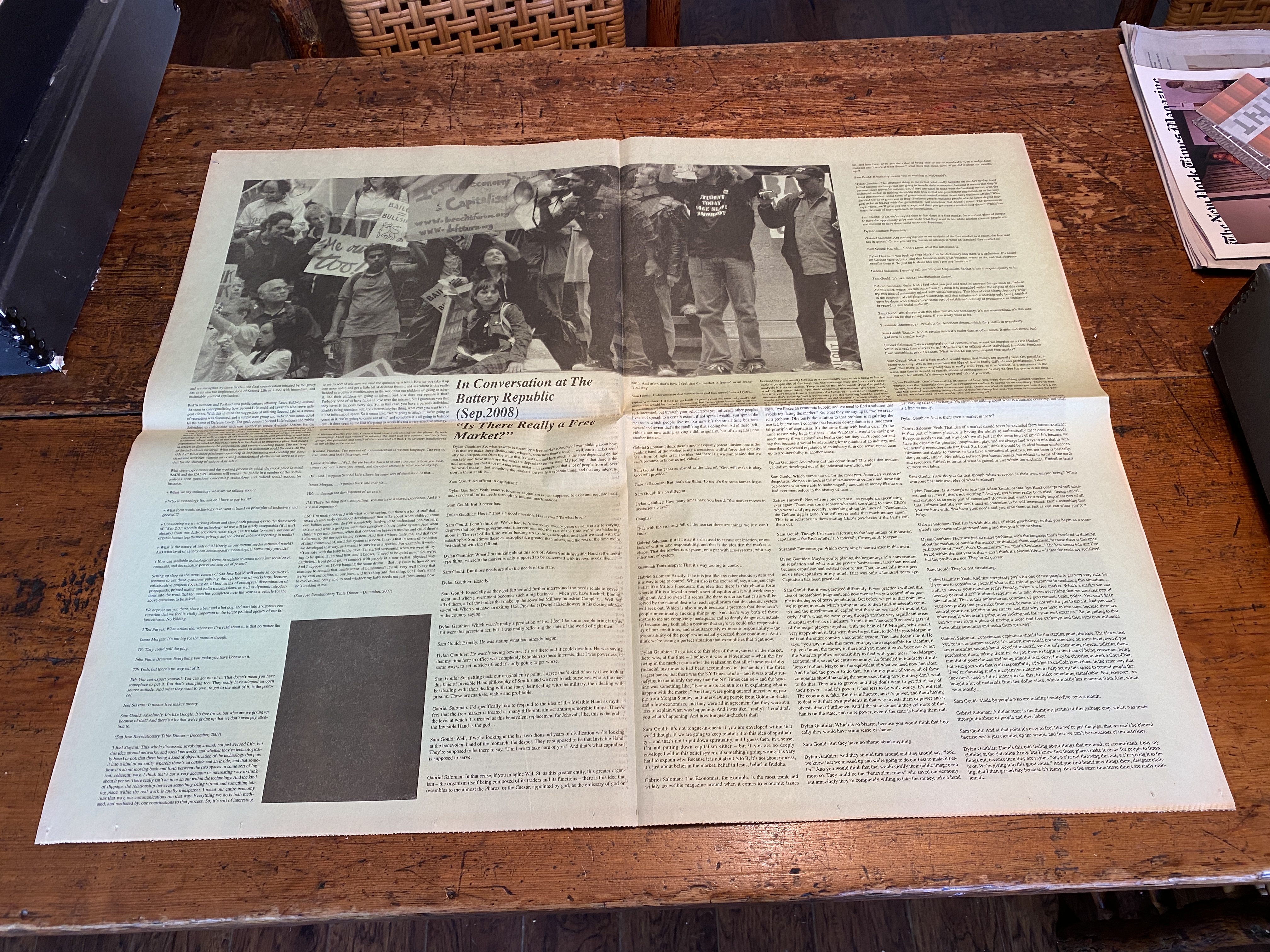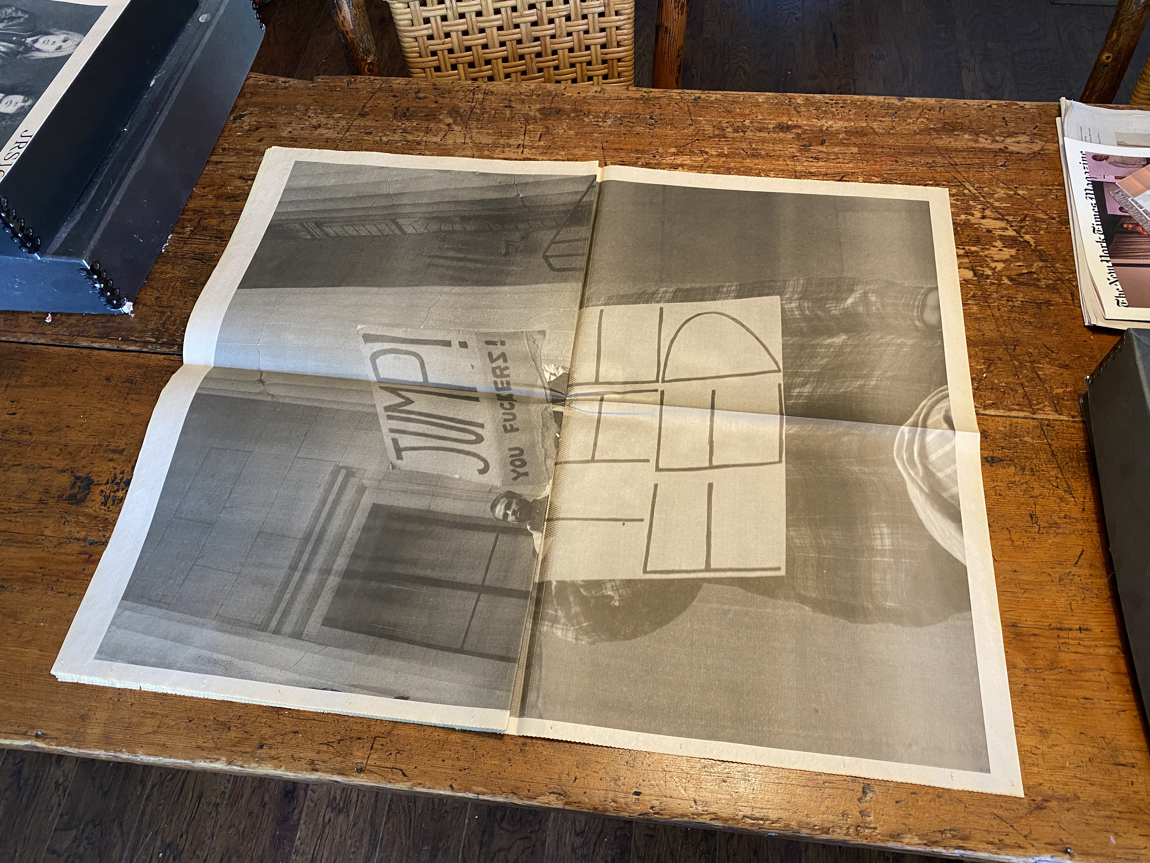 Always free of charge as a conceptual distribution strategy, the content of the JRS was decidedly not online. A form of tactical media, one could find it by becoming part of its process, acting as a distributor, or “randomly” on public transportation, in your mailbox, or slipped into a copy of the NY Times.