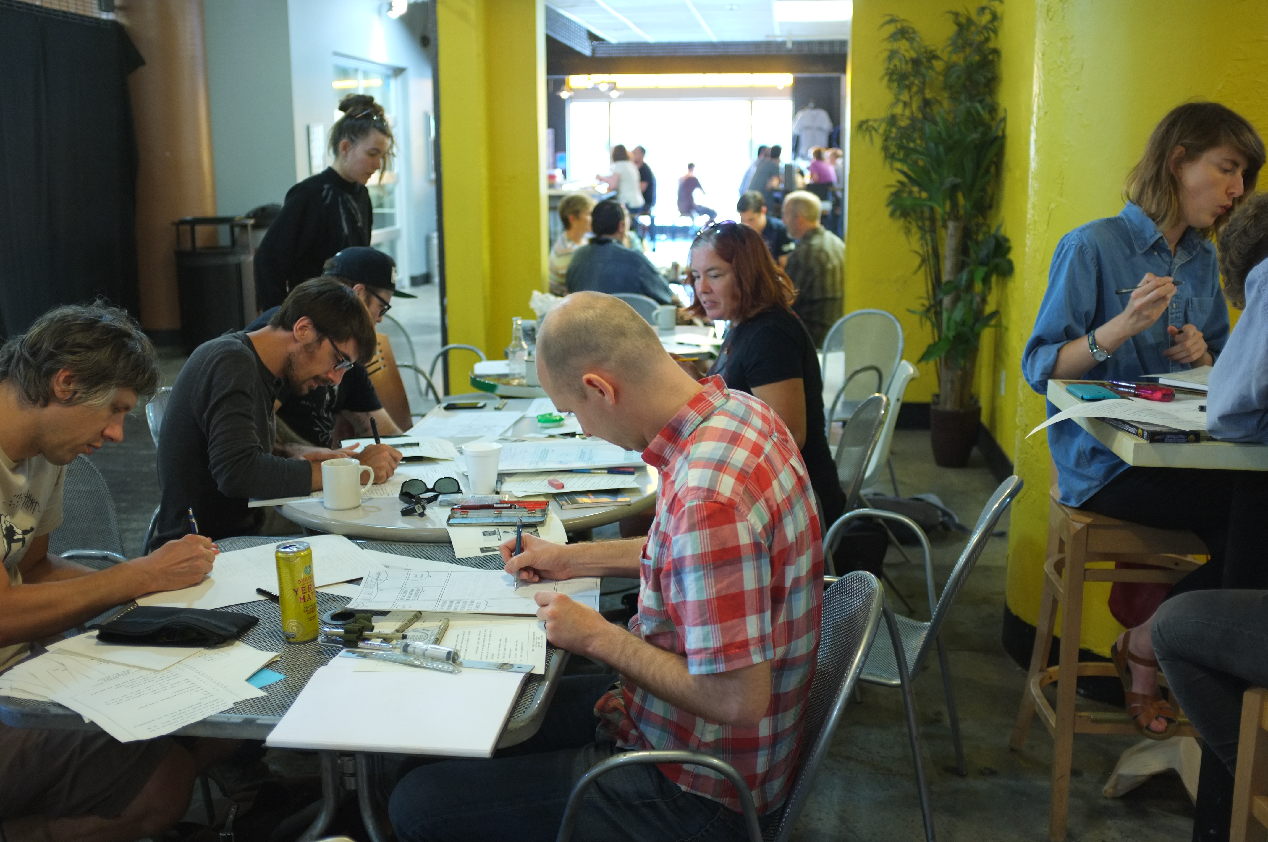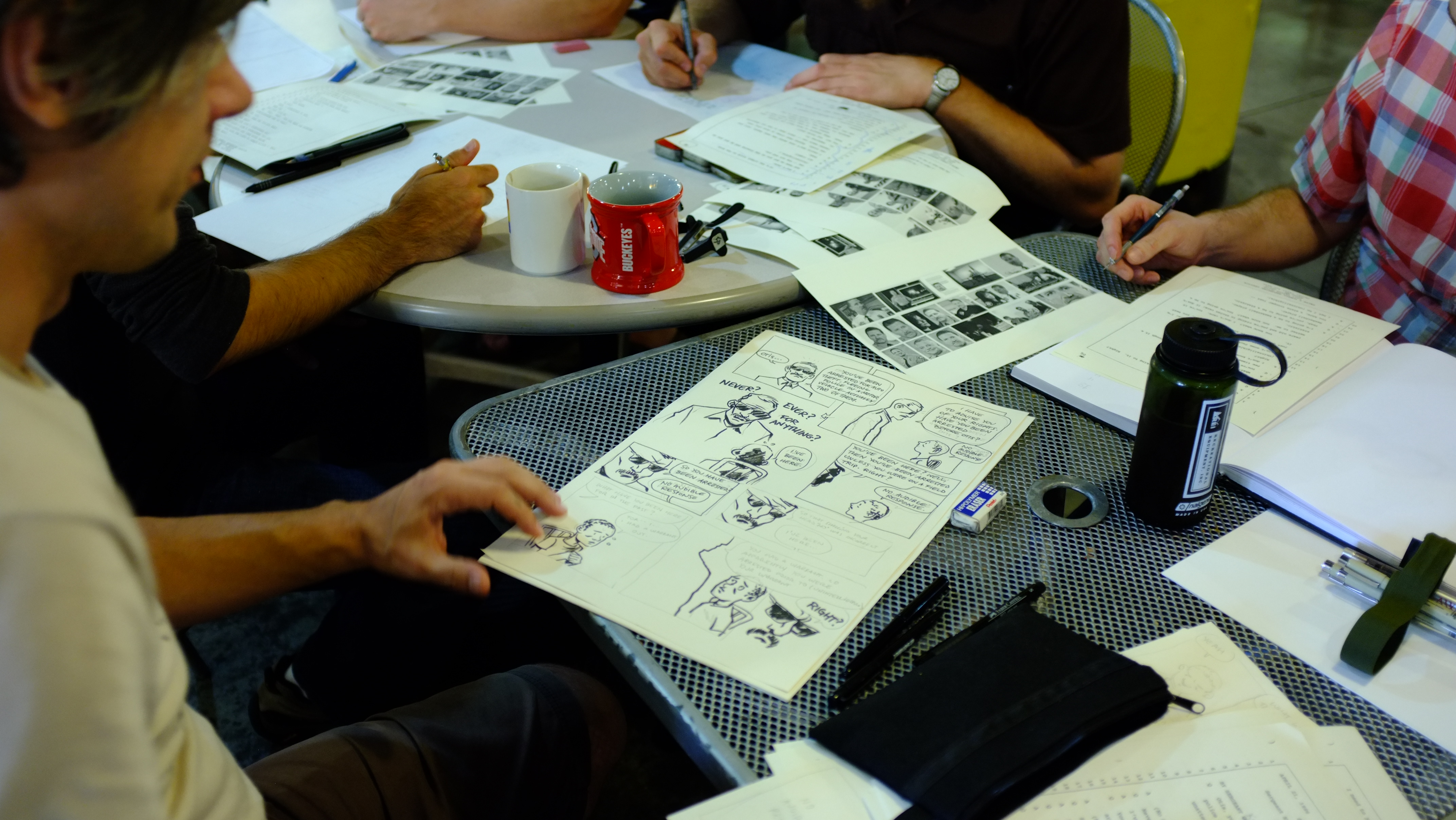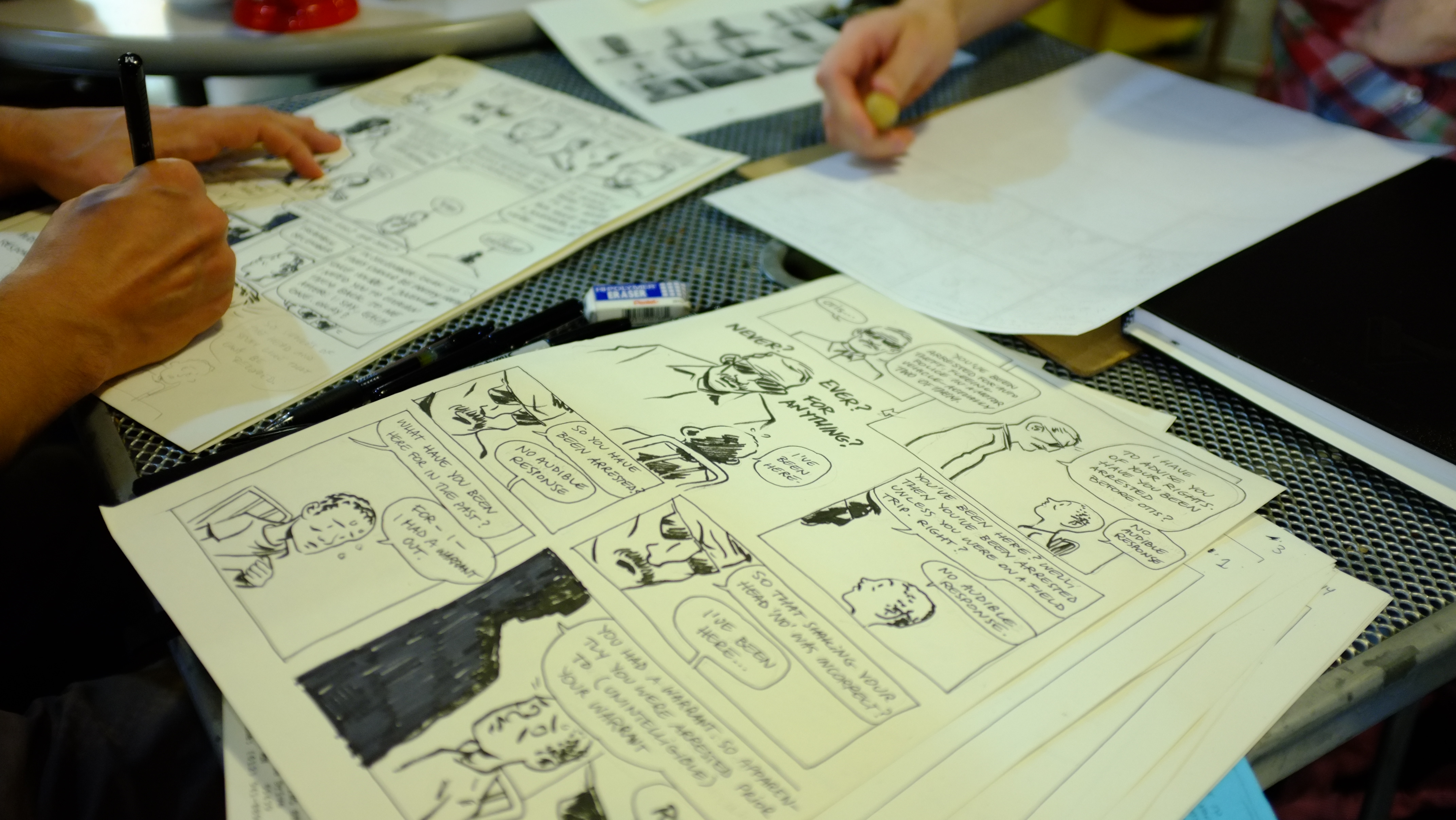 In August of 2016 Gould and Tom Kaczynski brought together eighteen comics illustrators to Beyond Repair's publication site, Transmission, in S. MPLS's Midtown Global Market. Over the course of an afternoon each artist took a few pages of the transcript and was asked to illustrate those pages using the text of the transcript as source material, without altering any of the language.