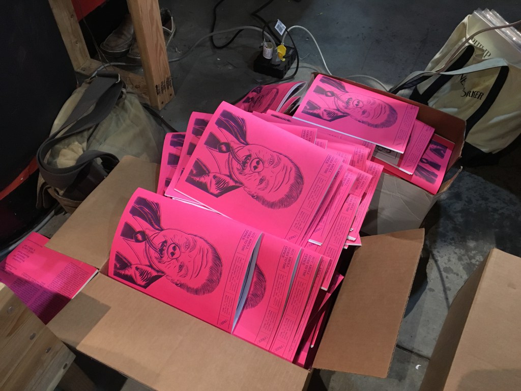 Three hundred issues were printed to be given away for free, but first, copies were hand delivered to the mayor, police chief, and complete city council. Not long after distribution began, Kroll found out about the comic, came to the shop, and without saying a word grabbed a handful of copies and left."